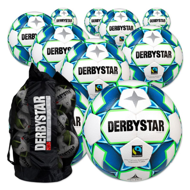 Hochwertige Derbystar Fairtrade Fußbälle mit sehr guten Spieleigenschaften 10 Stck. Derbystar Fairtrade Fußbälle Gamma TT im Ballpaket Material: PU, Golfballstruktur glänzend, weicher Ballkontakt durch spezielle Kaschierung von Derbystar Größe: 5 Sehr gute Spieleigenschaften Blase: Butyl Blase Handgenäht Für alle Plätze geeignet Sehr preiswert im Ballpaket Fairtrade zertifiziert Der Fairtrade Gamma TT von Derbystar ist ein sehr strapazierfähiger Trainingsball mit sehr guten Spieleigenschaften. Von Profis für uns alle. UVP bei Einzelkauft 37,99€ pro Ball Derbystar Fairtrade Fußbälle Gamma TT für alle Wetterbedingungen DERBYSTAR Fußbälle sind durch ihre herausragende Verarbeitung gegen das Eindringen von Wasser und Schmutz optimal geschützt und können deshalb bei allen Platz- und Wetterbedingungen gespielt werden. Derbystar Fairtrade Fußbälle Gamma TT Beim Kauf der Derbystar Fairtrade Fußbälle Gamma TT fließen 15% des Herstellungswertes direkt in einen speziellen Fonds für weitere soziale Projekte.Von der Fairtrade-Initiative profitieren heute schon über eine Million Familien in rund 50 Ländern. Denn durch den fairen Handel erhalten Arbeiterinnen und Arbeiter eine faire Entlohnung, menschenwürdige Arbeitsbedingungen und das Recht zur Mitsprache an einem Sozialfonds. DERBYSTAR unterstützt die weltweite Fairtrade-Bewegung, weil sie dieselben Ziele verfolgt wie Derbystar mit seinem sozialen Engagement in seinem Produktionsland Pakistan. Derbystar Fußbälle im Ballpaket bei Ihrem Fußball Spezialisten fussball-web-shop.de Wir führen alle aktuellen DERBYSTAR Fußbälle, und immer ganz besonders günstige Angebote als Ballpaket. Viele Fußballvereine, Schulen und Mannschaften vertrauen uns seit Jahren.