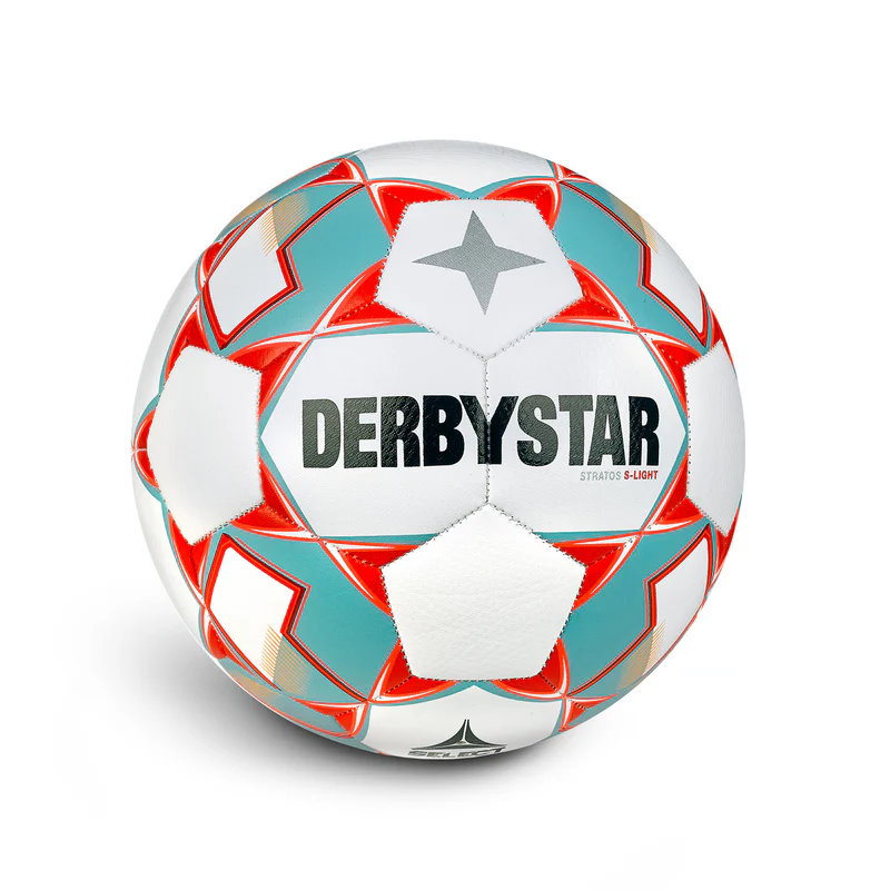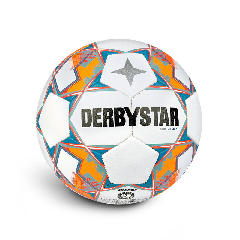 Derbystar Stratos light Jugendfußball Maschinengenähter und strapazierfähiger Jugendfußball mit weichem Ballkontakt und guten Spieleigenschaften.Reduziertes Gewicht (ca. 350 g ) , ideal für E- und D-Jugend Material: PU, matt Strukturoberfläche Maschinengenäht Blase: Synthetic-Rubber-Blase. Für alle Plätze geeignet Gewicht: ca. 350 g ( light) Größe: 4 + 5 bitte auswählen Ideal geeignet für E- und D-Jugend Eigenschaften: Weicher Ballkontakt. Strapazierfähig. Gute Spieleigenschaften. Der Derbystar Stratos light Jugendfußball ist ein vollwertiger Fußball aber eben wesentlich leichter.Kindgerechte Fußbälle wie der Jugendfußball Derbystar Stratos light sorgen für schnelleren Lernerfolg und die Kindern spielen auch mit mehr Freude und Spass mit leichteren Fußbällen. Der Derbystar Stratos light ist PVC frei PU Fußbälle sind im Vergleich zu PVC Bällen weicher und genauer zu spielen, die Flugbahn ist stabiler, das Sprungverhalten präziser. PU Bälle bleiben auch bei niedrigen Temperaturen geschmeidig, während PVC Bälle hart werden und Sprungeigenschaft einbüßen. Ganz wichtig für Vereine: PU-Bälle halten viel länger als PVC-Bälle! Derbystar Stratos light sind für alle Wetterbedingungen geeignet und können bei allen Platz- und Wetterbedingungen gespielt werden, denn durch ihre herausragende Verarbeitung sind sie gegen das Eindringen von Wasser und Schmutz optimal geschützt. Empfohlene Fußbälle für Kinder und Jugendspieler: G-Junioren: Größe 3 (290 g) Ø 19,10 cmF-Junioren: Größe 3/4 (290 g) Ø 19,10 cm / 21,01 cm E-Junioren: Größe 4 (290 g / 350 g) Ø 21,01 cmD-Junioren: Größe 4/5 (350 g) Ø 21,01 cm / 22,28 cm Hier handelt es sich um Empfehlungen des DFB, deren Umsetzung obliegt den einzelnen LandesverbändenAus der Internetseite des DFB ( Stand 03/2017 ) Die Ballpakete finden Sie hier.