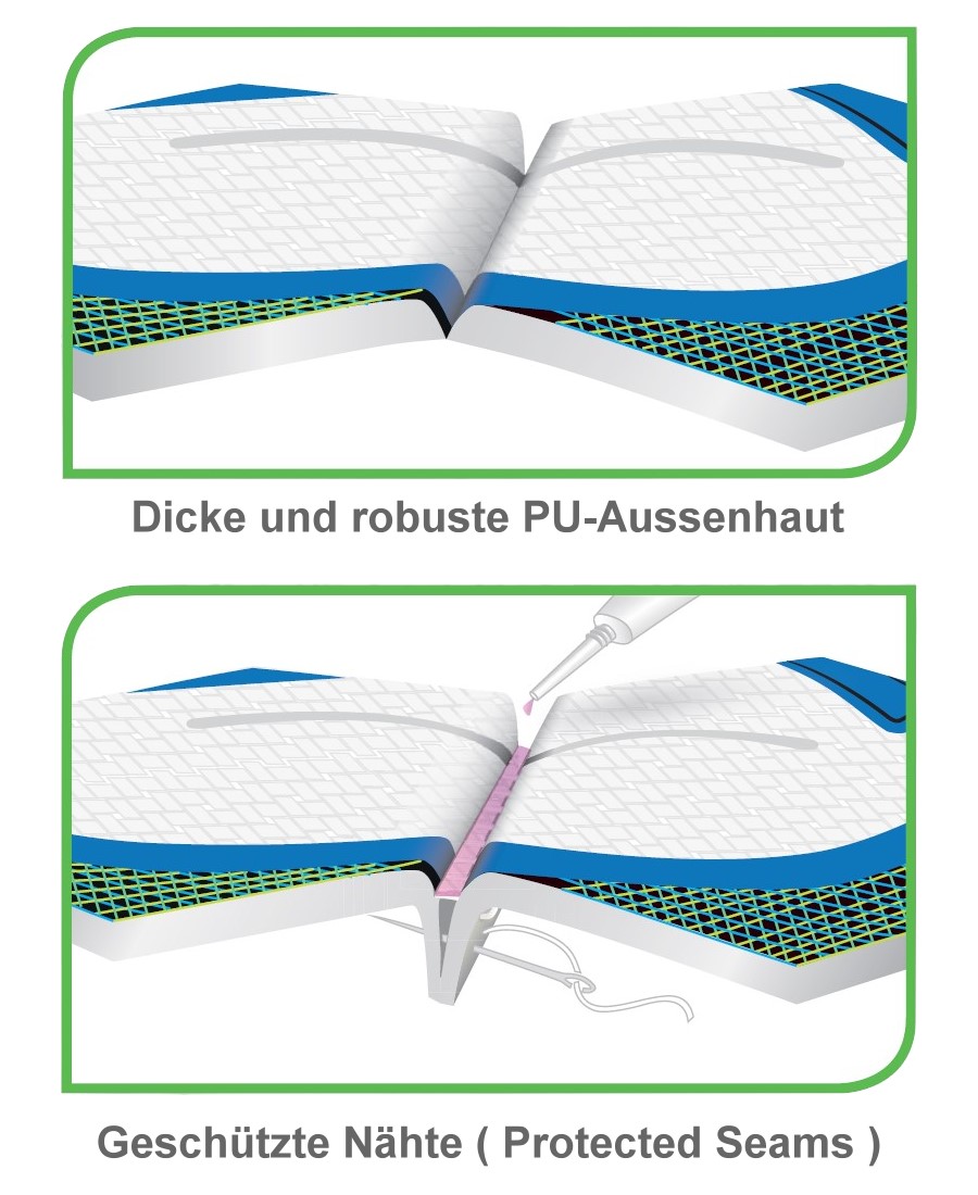 Wie verhält sich der Ball bei Regen? Durch die verklebte Oberfläche nimmt der Ball nur minimal Wasser auf und bleibt formstabil.