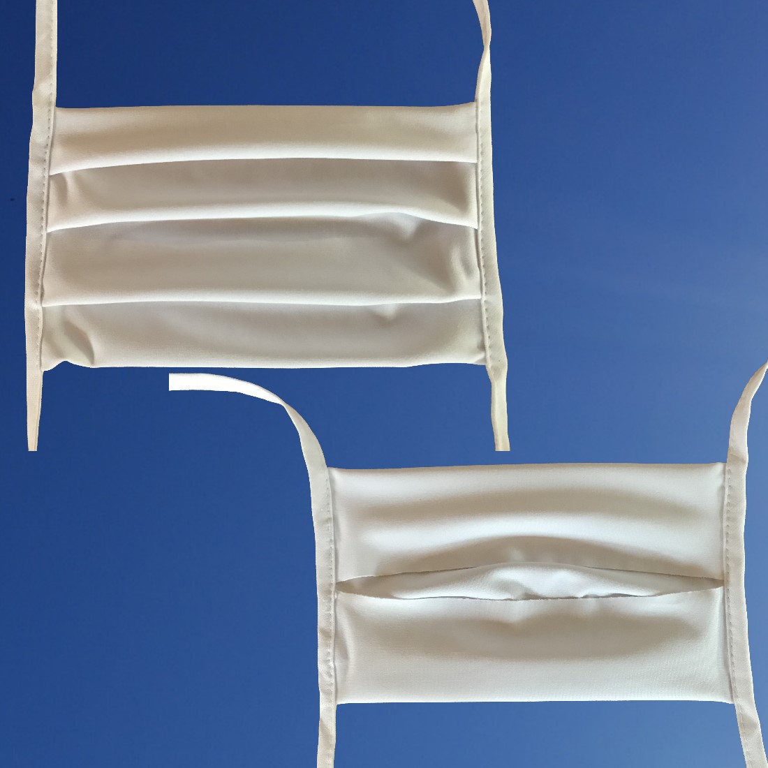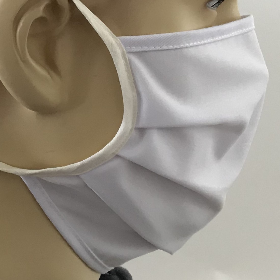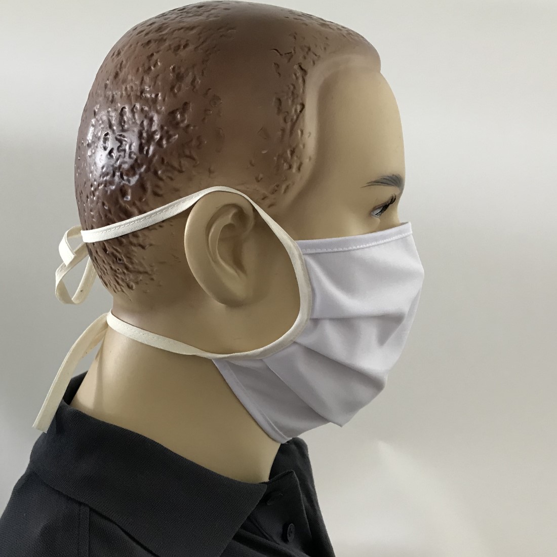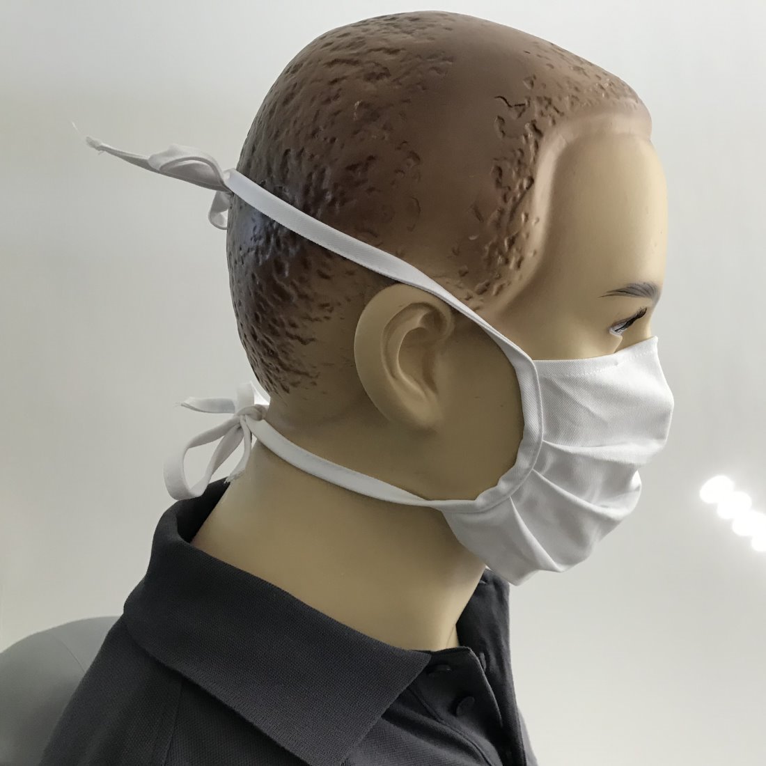 - Mit Bändern zur Fixierung hinter den Ohren oder am Hinterkopf